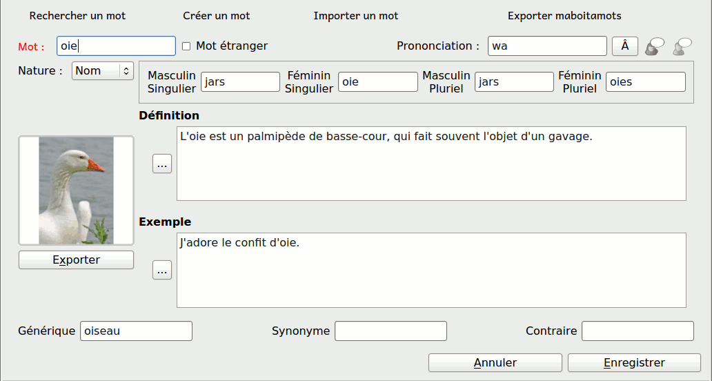Ce logiciel permet à chaque utilisateur de disposer d'un répertoire électronique multimédia personnel dans lequel il peut créer autant de "mots" qu'il souhaite et créer des liens entre les différents mots. Pour illuster les mots l'utilisateur peut choisir directement dans l'entrepôt de données libres d'AbulÉdu.