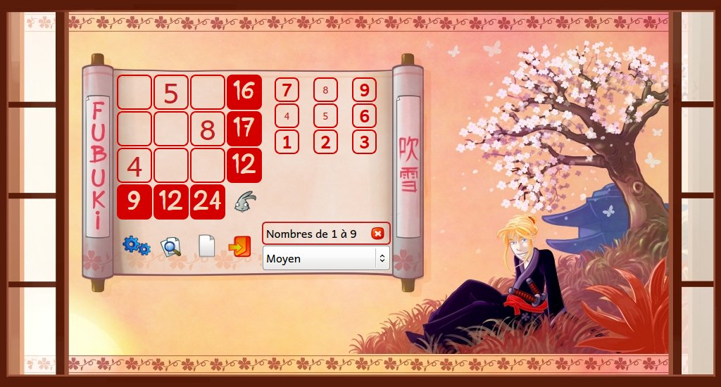 Le Fubuki consiste à placer une liste de nombres dans une grille 3×3 de façon à obtenir, par additions successives, le résultat indiqué sur chacune des lignes, chacune des colonnes.